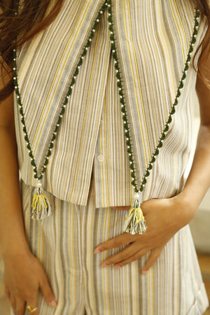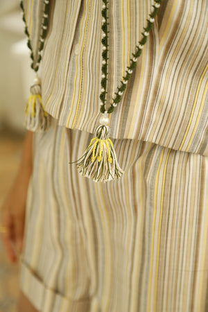 Cotton striped big collar top with high waist elasticated shorts.