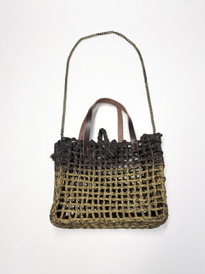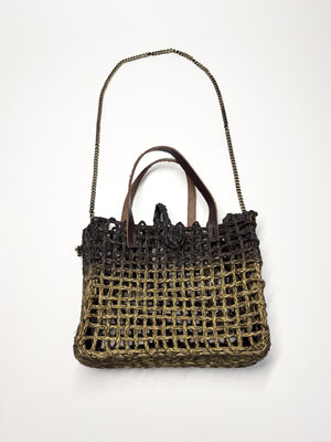 HAND MADE JUTE SLING BAG WITH LEATHER HANDLE AND METAL SLING